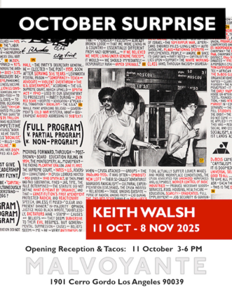 Keith Walsh produces original art about American social-political history and culture, based upon extensive research. Walsh received a Cultural Trailblazer Award by the City of Los Angeles Department of Cultural Affairs 2021-22. Recently exhibitions include: The Oakland Museum of California, Into Action, Chicago 2024, Creative Resilience Los Angeles, LA Tate Los Angeles, RDFA Los Angeles, The Dallas Biennial 2020, The Kleefeld Contemporary Art Museum Long Beach, Los Angeles Municipal Art Gallery, SoLA Contemporary, and Long Beach City College.
